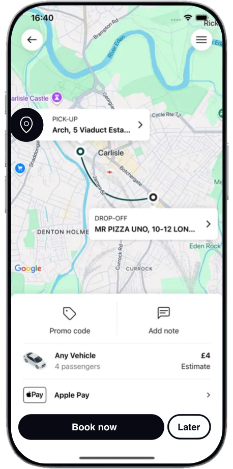 🚖 Reliable, prompt local service 📱 Easy booking via our app or by phone 🗺️ Local drivers who know the area ⏰ Book instantly or in advance 💳 Card payments available